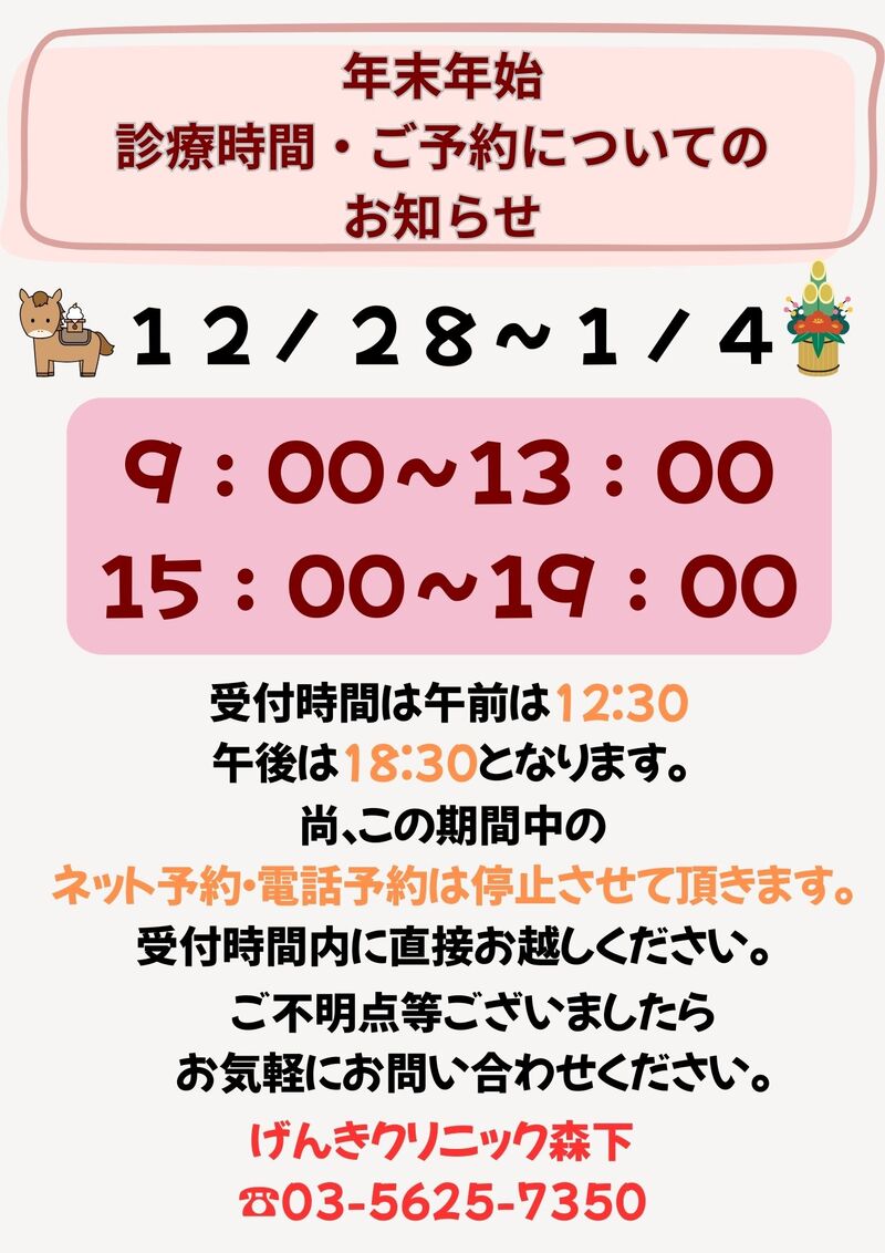 尚、周りの医療機関で空いてる医療機関が少ないため、混雑が予想されご予約の時間内にご案内できないことが予想されますのでこの期間の”電話予約・ネット予約”は停止させていただきます。ご了承ください。